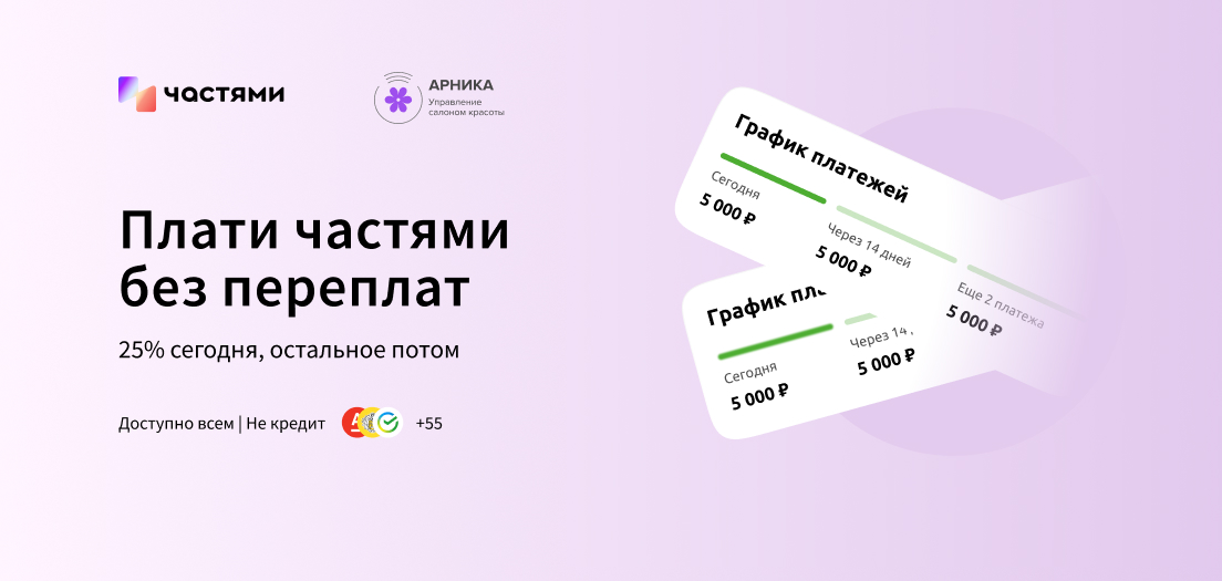После первого списания сервиса "Частями" начните пользоваться тарифом CRM Арника сразу