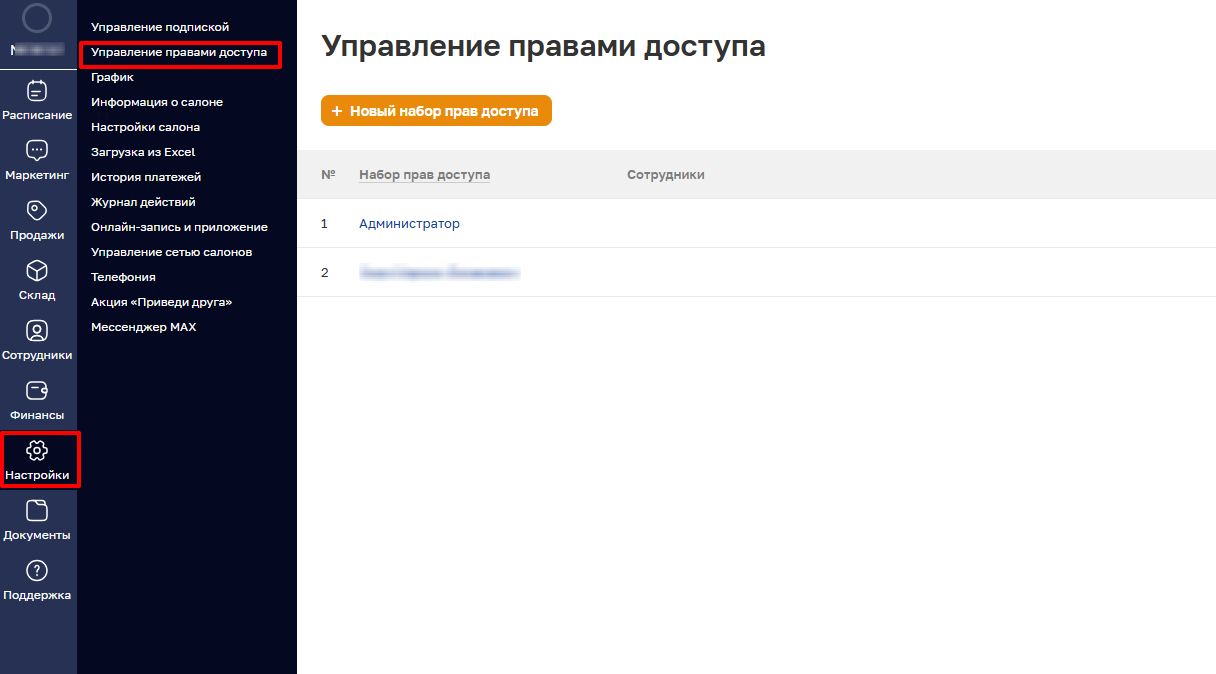 Шаг 1. Перейдите в раздел «Управление правами доступа» (Настройки - Управление правами доступа). Далее создайте новый набор прав