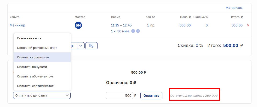 С депозита можно оплатить услуги. Если сумма на депозите меньше стоимости услуги, доступна частичная оплата.