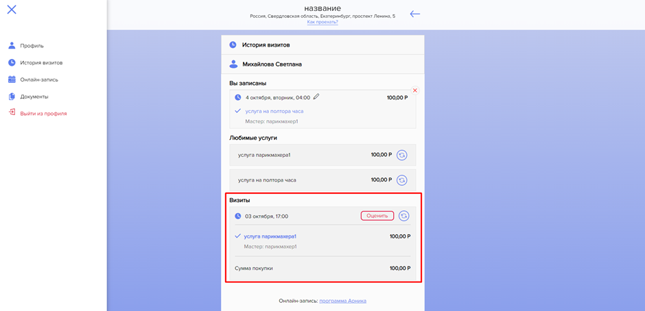 Функционал отражает все визиты, которые были оформлены на клиента.